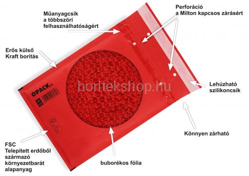Színes Légpárnás Boríték, Buborékos Boríték, Légpárnás Tasak G/17 PIROS belméret: 230x340 mm külméret: 250x350 mm